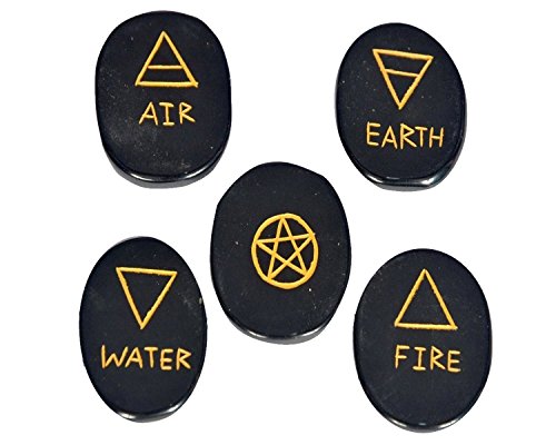 WholesaleGemShop Genius Black Jasper Five Element Symbol Set Engrave Stones Pagan And Wiccan Sets Healing Metaphysical Meditation Relaxation