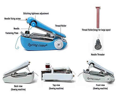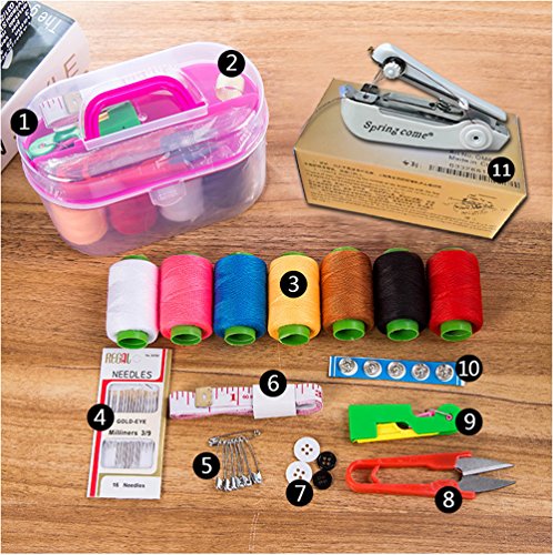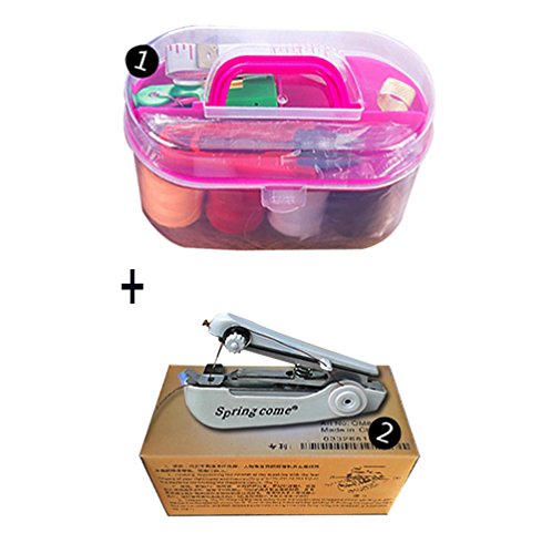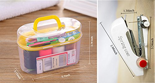 Mini Handheld Sewing Machine Kit Small Craft Sewing supplies with Organizer Including Needles Thread Measuring Tape scissors for Adults Kids Girls College Students with Travel Container Color Random
