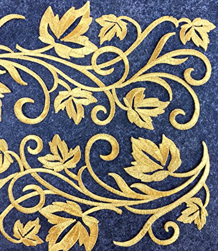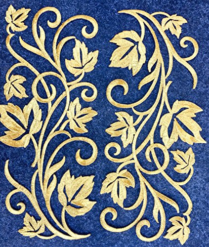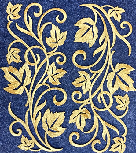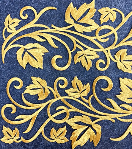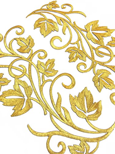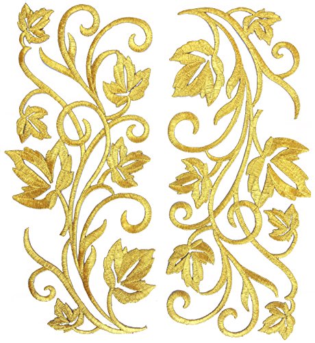 Two Hug Gold Flower Leaves Iron on Embroidered Appliques Patch Flower Motifs, Craft, Sewing, Embroidery Patches, Embroidered Lace Fabric Ribbon Trim Neckline Collar (Gold)