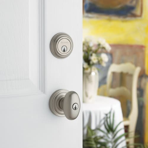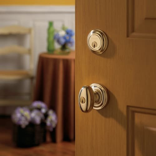-. Title : Baldwin 5225.ENTR Egg Style Keyed Entry Door Knob Set with Classic Rosette the E,