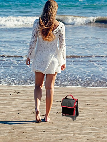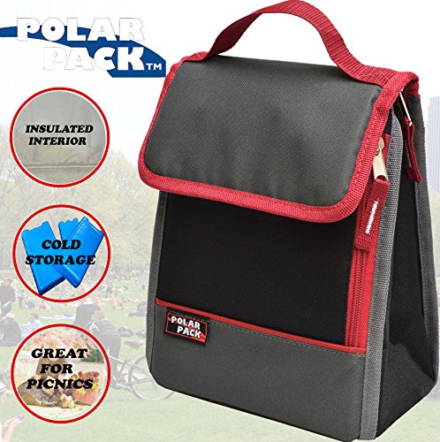 POLAR PACK Insulated Lunch Bag Insulated Tote Bag Cooler Bag Side Zipper Pocket Handle Carry Insulated Picnic Bag Indoor Outdoor Carry Bag Portable Travel Bag for Beach & Work (BLACK/CHARCOAL/RED)