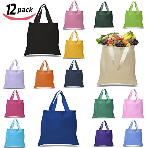 TOTAL OF 12 PLAIN COTTON TOTE BAGS, Shopping Tote, Office Tote or Grocery Tote, Arts & Crafts Tote, Bible Tote or Beach Bag