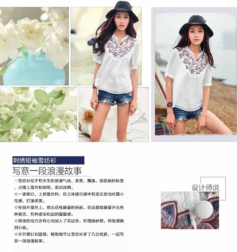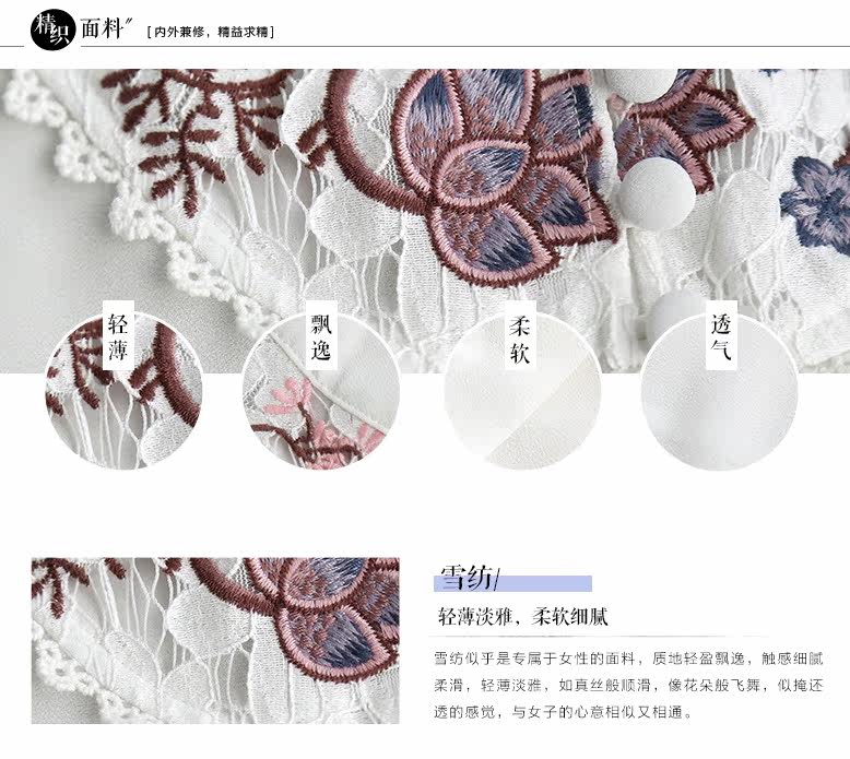 优选触感细腻轻柔的雪纺料,爽滑垂坠飘逸,穿着轻舒自然。 轻柔雪纺