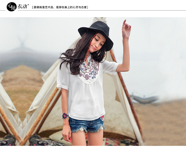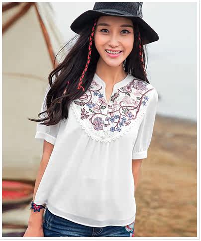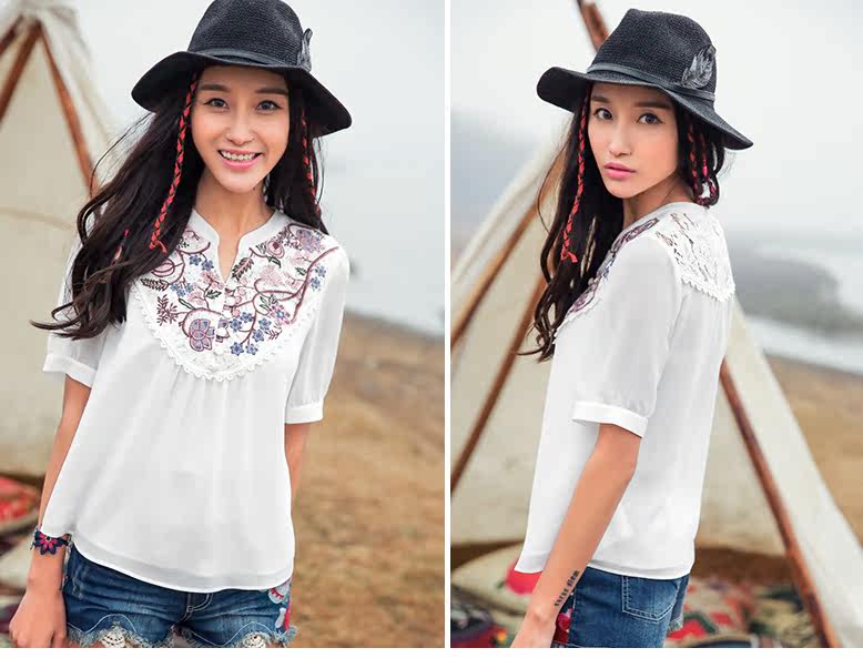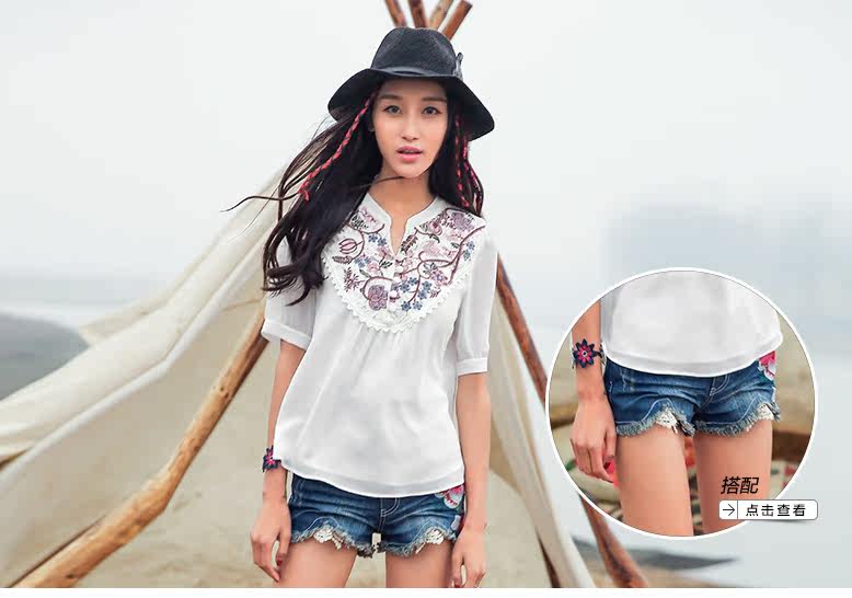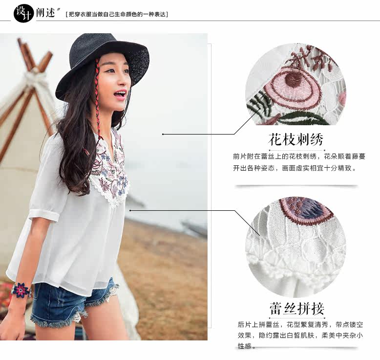 碎褶袖口  短袖袖口收束,有轻微碎褶,添上几分秀气。