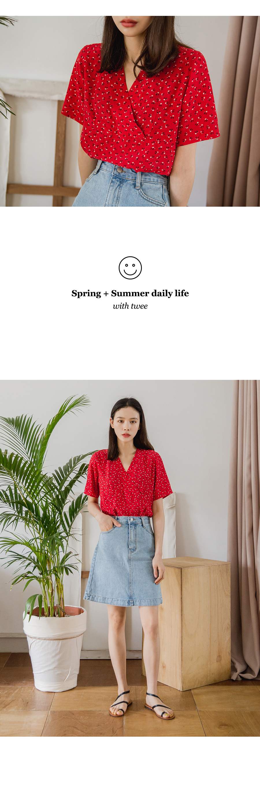 MD COMMENT상클발랄함의 무드가 가득담겨있는앵두스트랩 블라우스입니다 전체적으로 여유있는 실루엣으로 편안하게 착용하실 수 있구요 V네크라인과 스트랩디자인으로 목선을 여리여리하게보이면서 페이스라인이 작아보여요 ~밋밋하지않게 앵두패턴으로 한층 더 발랄함이 느껴져 다양한 하의와함께 매치하기좋은 아이템이에요!