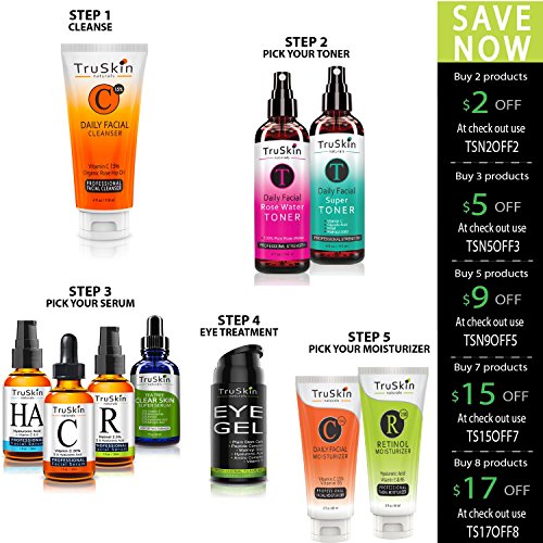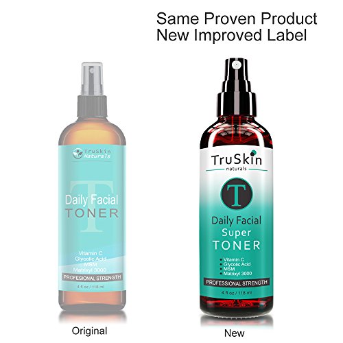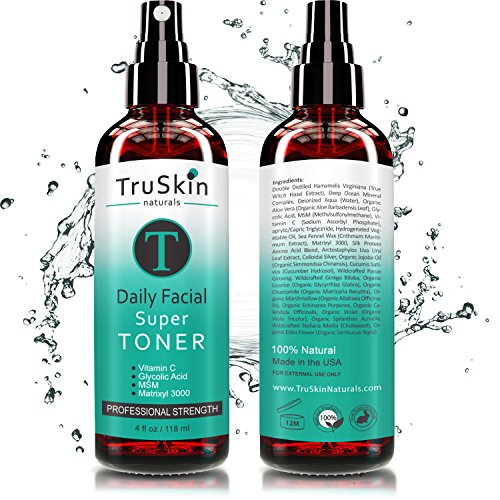 -. Feature : 100% NATURAL ANTI AGING TONING SPRAY - True Witch Hazel, Amino Acids, MSM, Vitamin C, Glycolic Acid, Aloe Vera & Active Plant Extracts in this highly bio-available formulation target existing sun damage, enlarged pores, fine lines, and uneven skin tone. / THE DIFFERENCE in skin treated with TruSkin Naturals Daily Facial Toner is striking. In addition to its powerful anti aging properties, customers have reported that this refreshing daily toning mist has helped to smooth, hydrate & refresh skin, shrink pores, clear up acne, prevent breakouts, and minimize the appearance of acne scars giving skin a radiant, healthy and glowing appearance. / NOURISH, BALANCE, REFRESH & TONE SKIN - Skin is freshened & toned with Organic Aloe & True Witch Hazel Extract, nourished by Deep Ocean Organic Mineral Complex, softened and smoothed by Glycolic Acid & Vitamin C while organic MSM drives active ingredients deep into the tissue preparing skin for serums and moisturizers. / HIGHEST QUALITY INGREDIENTS - Formulated with only the highest quality natural & organic ingredients, this concentrated All-In-One Daily Facial Toning Spray is surP.R.Isingly gentle and is suited for even the most sensitive skin types. / 100% CUSTOMER SATISFACTION GUARANTEE - TruSkin Naturals is a different kind of company that offers the absolute best customer service in the industry. If for any reason you decide that this facial toner is not for you, you have a FULL 3 MONTHS to send 1 simple email and receive a 100% money-back refund, absolutely no questions asked (in fact, you don't even have to return the bottle).