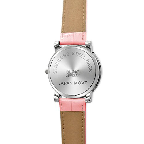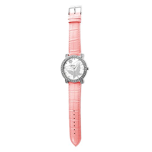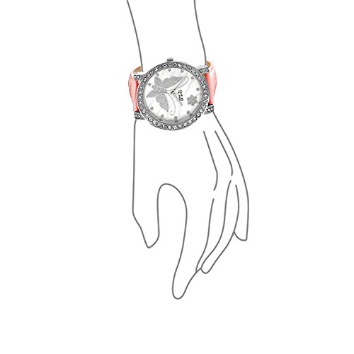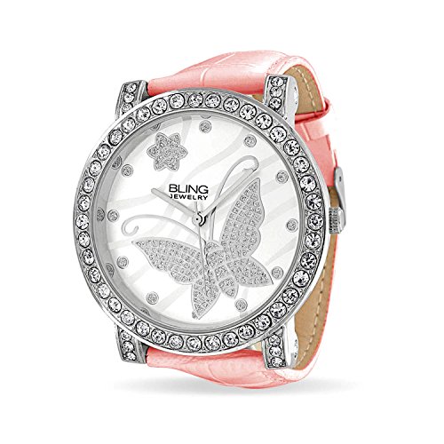 This butterfly cz encrusted woman's strap watch, will add a touch of nature-inspired beauty to your look. It's dial is beautifully enhanced with a cz butterfly , crystal flower, and round shaped crystals on each hour. It's pink, leather buckle strap will give you a secure and comfortable fit. This makes for the perfect Mother's Day gift.