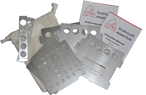 BUILT TO LAST, BEST SELLING ORIGINAL DESIGN: 100% Stainless Steel; designed and manufactured in Germany; MAINTENANCE: The Bushcraft Essentials stoves require almost no care and maintenance but be sure to keep the stove free from dirt and wipe it down from time to time. Keep the holes in the base plate clear and un -clogged as to get the most optimal and efficient fire. For videos enter "bushbox" on YouTube. For a larger version have a look at the Bushbox XL