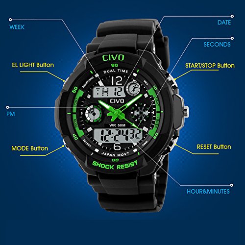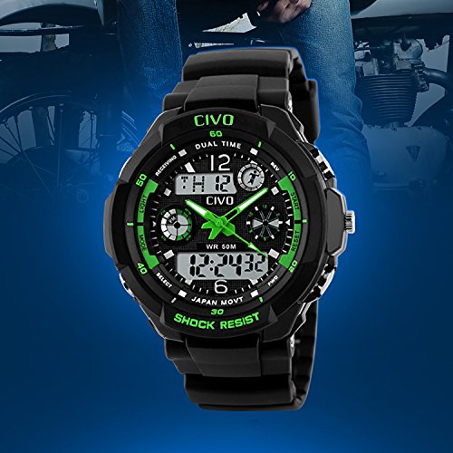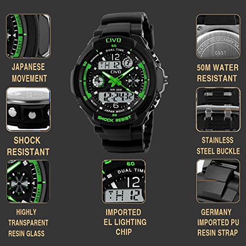 2. High Quality Silicon Watch Band and Stainless Steel Dial Case Back Cover: high quality material is taken to produce our CIVO sport watch, which makes it look much more expensive than it actually is