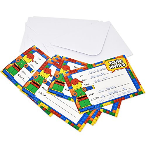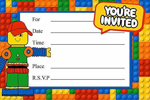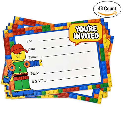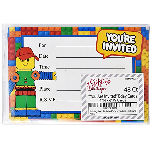 Studio : Gift Boutique Publisher : Gift Boutique Binding : Toy Product Description Includes 48 building blocks invitations and 48 white envelopes. Each card is printed on one side blank on the opposite side. Card measures 4" x 6"; Enough place To Write All The Info Needed: For, Date, Time, Place RSVP. The Birthday Invitations Are Made with High Quality, thick Printed Paper. Perfect for any Lego Party! An Awesome Way To Start Having Fun Even Before The Birthday Party Begins! 0