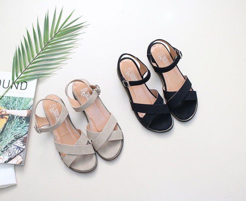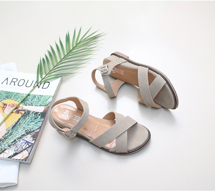 商品名:サンダル レディース ローヒール クロスストラップ アンクルストラップ 2018 夏 ファッション 靴 婦人靴