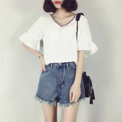 【店主佳佳:身高:163cm 体重:43kg 胸围:85CM 腰围:60CM 臀围:85CM 裤码:25/26 上衣小码】