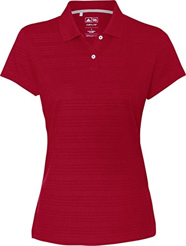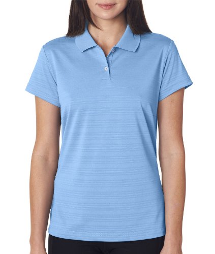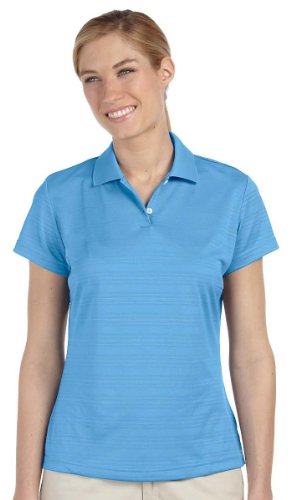 Adidas ClimaLite technology means that you stay comfortable in this textured polo when the temperature rises.Features. 5.2 oz. 100 polyester jersey.. Moisture-wicking finish.. Rib-knit collar.. 2-Button placket.. Set-in open-hem sleeves.. Side seams.. Color - Gulf.. Size - XL.. Item Weight - 0.48 lbs.Care Instructions. Machine wash cold with like colors.. Do not use fabric softener.. Do not bleach.. Tumble dry low.. Cool iron.. Do not dry clean.Feature