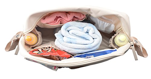 This is the perfect tote for mom to keep all baby's essentials organized. -Flap front pocket is perfect for mom and front and side pockets were designed for easy access. - The center zip pocket opens to a zippered security pocket and three insulated bottle pockets and two mesh pockets. - Includes changing pad and dirty duds bag. Lots of package to keep things organized. 10 pocket Interior Construction: 1 zipper pocket, 3 lining pockets, 1 hand-phone pocket, 2 side insulated pockets, 1 pacifier pouch, 1 h/p pocket and 1 card pocket 4 pocket Outside Construction: 1 front pocket, 2 side pockets, 1 big back pocket Easy wipe clean exterior. -100% polyester printed microfiber fabric -16"w x 6"d x 10.5"hFeature