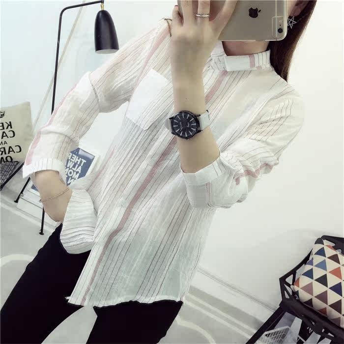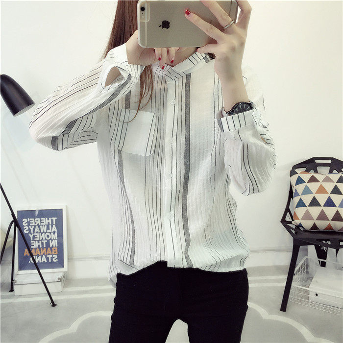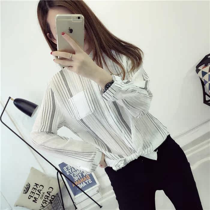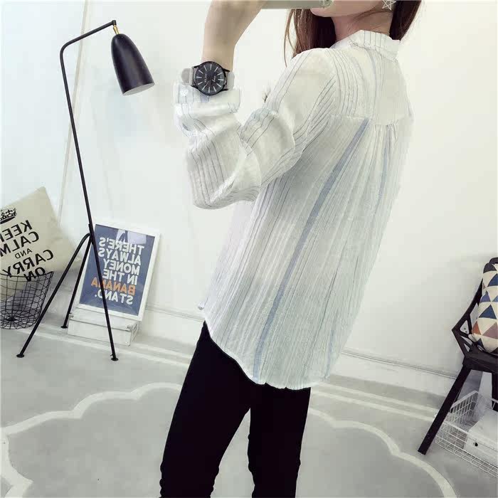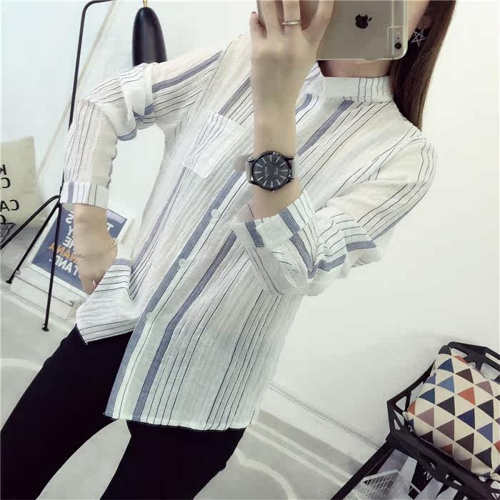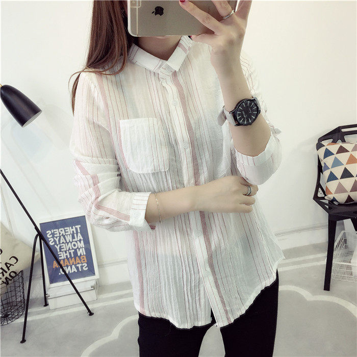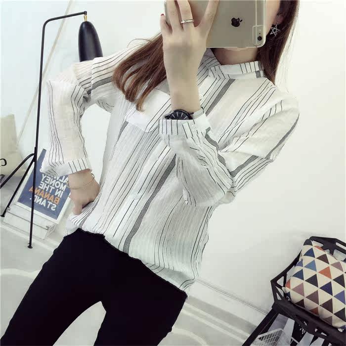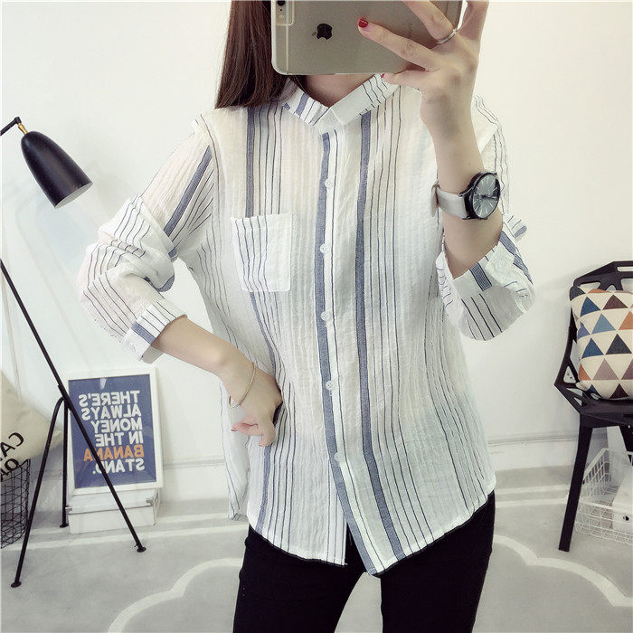 白衬衫女长袖纯棉宽松春秋学生韩范休闲清新气质百搭显瘦衬衣上衣