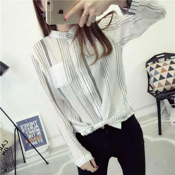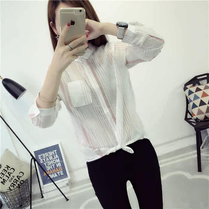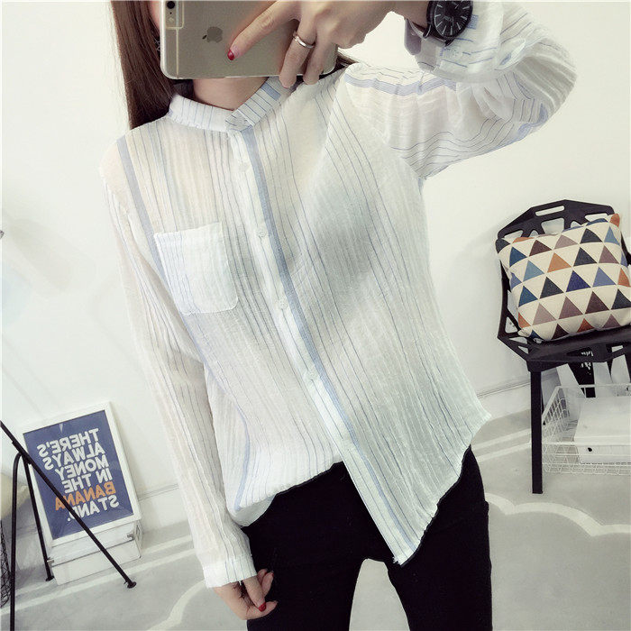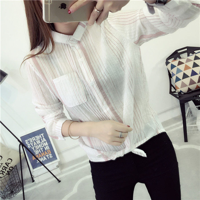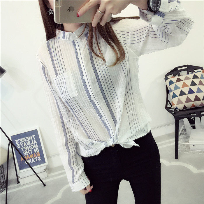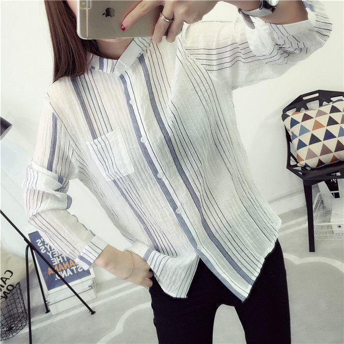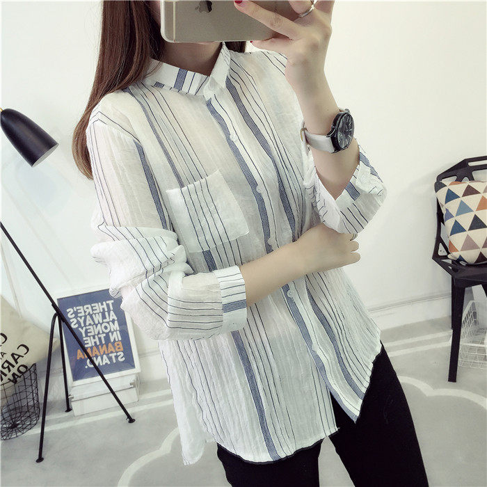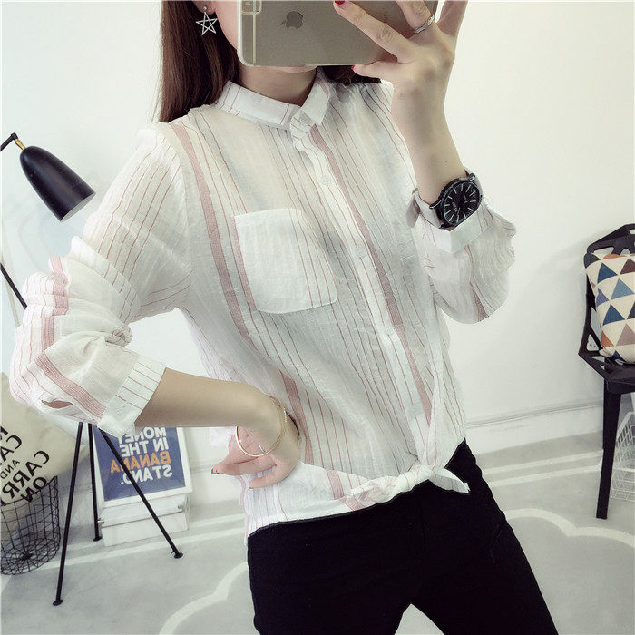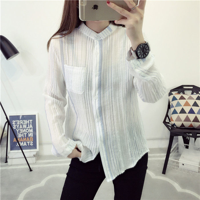 白衬衫女长袖纯棉宽松春秋学生韩范休闲清新气质百搭显瘦衬衣上衣
