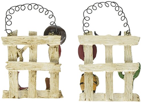 Kurt Adler 2 Assorted Western Decorated Fence Resin Christmas Ornaments
