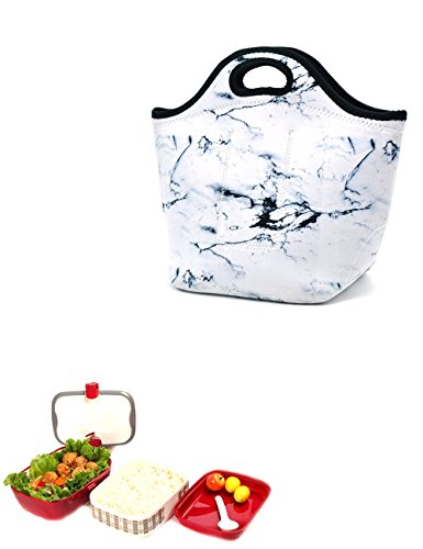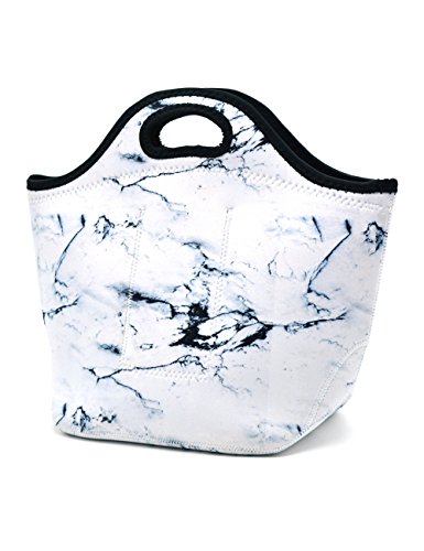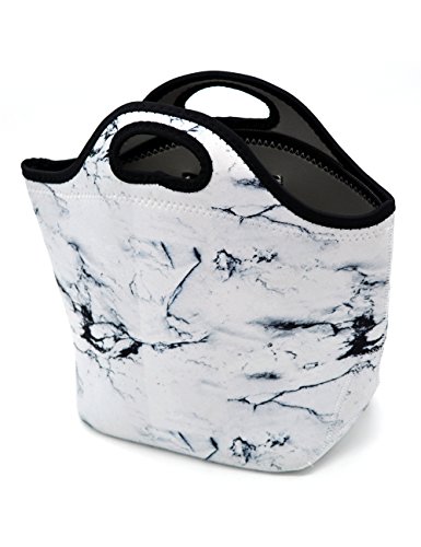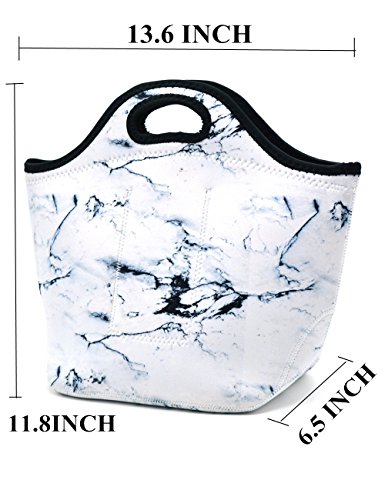 Neoprene Lunch Tote ,Insulated Waterproof Lunch Bags For Men, Women, Adults, Kids, Girls. Reusable, Washable, Water-proof Foldable, Light, Zipper (WHITE)