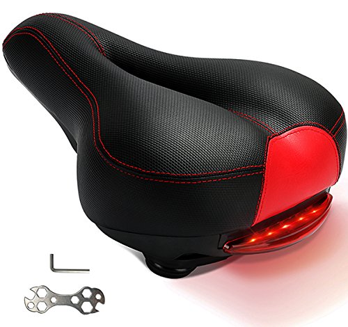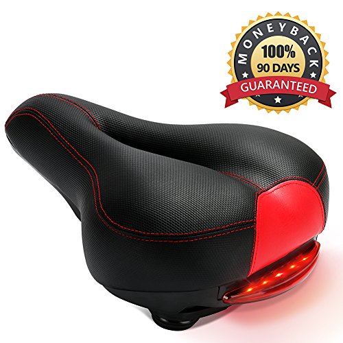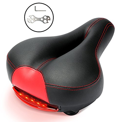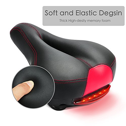 Comfortable Men Women Bike Seat , Ernovo Wide Bicycle Saddle Cushion with Taillight, Memory Foa...