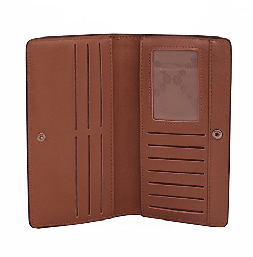 -. Feature : Imported / Clutch designed to secure your properties / Interior Pockets: 12 card pockets, 1 large open pockets, 1 ID window pocket, 1 exterior zipped pocket / Cowhide and Hight quilty PU leather; lightweight, durable and fashionable / Dimensions: 8" x 4" x 0.5"