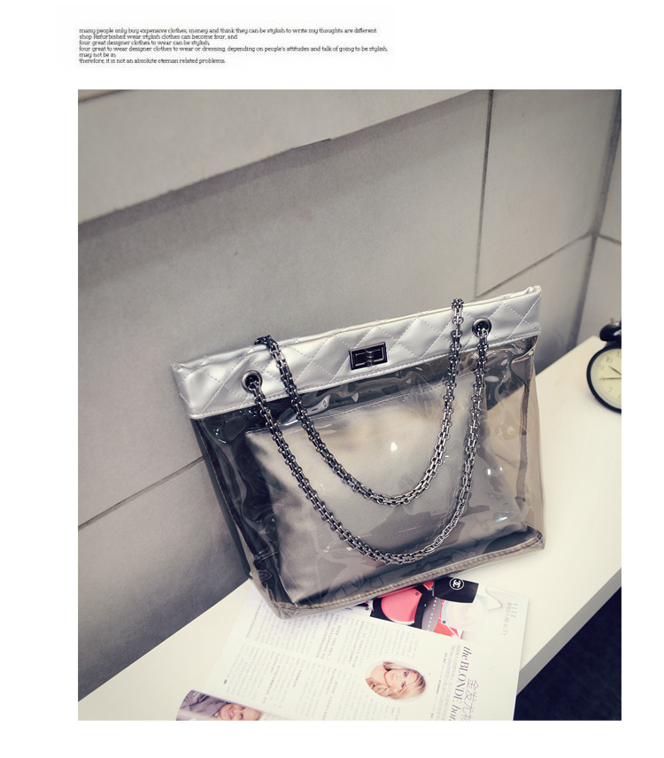 【関連キーワード】クリア キルティング トートバッグ チェーンバッグ ビーチ リゾート ポーチ付き 送料無料