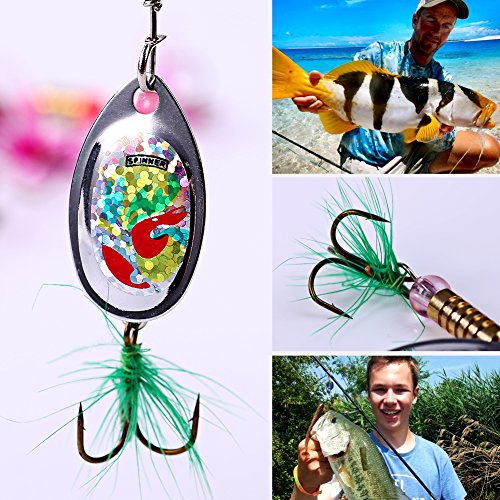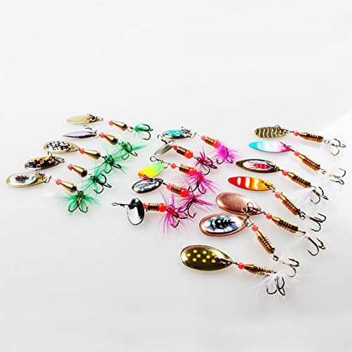 -. Feature : Highly reflective holographic finish spinner fishing lure kits. / Completely new perfect hard spinner design with feather for saltwater freshwater fishing. / Unique movement that provokes predator to bite / Instant weapon for immediately action / Weight:3~6gr/0.1-0.21oz,Length:5-8cm/1.97-3.15in