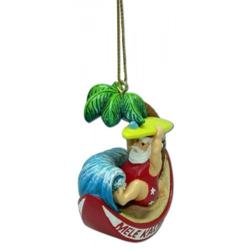 Hawaiian Santa Catching a Wave Christmas Ornament