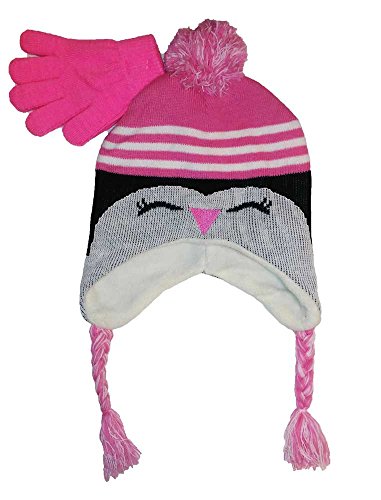 (Kohl's)/Accessories/Cold Weather Accessories/DIRECT FROM USA/Girls Winter Accessories Set Penguin Earflap Pom Hat Gloves Pink OS