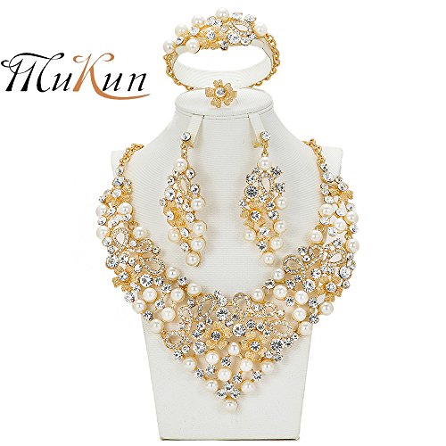 -. Title : Wedding Gold Plated Pearl Beads Jewelry Sets,MUKUN Dubai Necklace and Earrings Jewelry Sets for Banquet,Gold Pearl Bridal Necklace