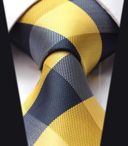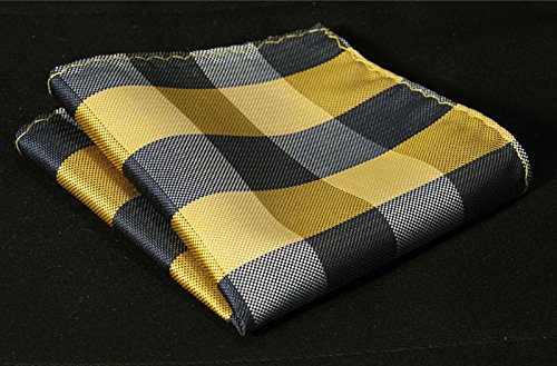 Hisdern HISDERN Herren Krawatte Taschentuch Check Krawatte & Einstecktuch Set Gelb & Wei? & Grau