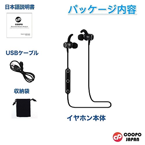COOPO JAPAN [일본 정규품] COOPO 블루투스 Bluetooth 4.1이어폰 마그넷 부착 자동적으로 온/오프 IPX4방진 방적 일본어 설명서 스테레오 헤드셋 스포츠 wireless 내장식 마이크