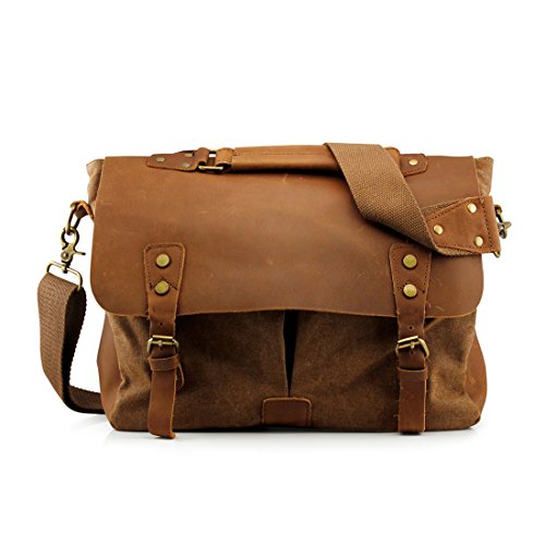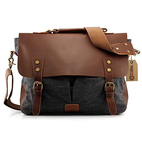 -. Brand : GEARONIC TM -. Department : mens -. Feature : DIMENSIONS: This satchel is 14.5 x 11.5 x 3.33 Inches Length x Width X Depth with 555 cubic inches of space / MATERIALS: This satchel made of superior canvas and it has a premium leather cover and handle. The strap is made of the same superior canavas and it's ends are reinforced with leather for increased durablity. / COMPARTMENTS: One large strapped compartment with a handle on top for easy carriage. There are four inner pockets inside this main compartment for ideal storage capabilities. / Product of GEARONIC TM Trademark Registered. US Trademark Registration Number 4485966 will be fully enforced. / men bags mens man purse computer satchels sling purses tablet laptops mans gray male -. ProductGroup : Shoes -. ProductTypeName : HANDBAG -. Title : GEARONIC Men's Faux Leather Canvas Messenger Vintage Satchel Shoulder Bag for School Laptop
