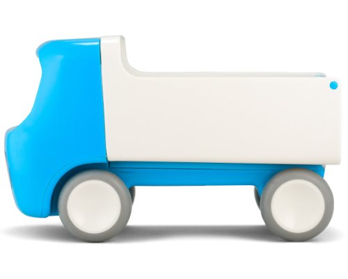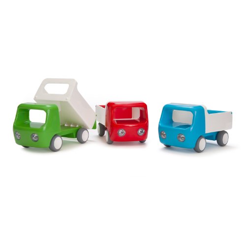 A perennial best seller for Kid O Toys, the Tip Truck is the perfect first truck for the early vehicle enthusiast. The attractive modern, rounded design has no sharp edges, a pleasing tactile feel and a hinged truck bed and tailgate to haul and dump the largest loads. The modern design features a unique cab that doubles as an easy to grasp handle for superior hold, push and roll control. This is a substantial first truck, solidly built with bright, vibrant color throughout that will not chip or fade. Color-safe and non-toxic it will stand up to the most active driver. The rubber coated wheels glide, slide and ride easily for hours of fun that won’t mar furniture or floor. The perfect skill building size, the Tip Truck helps develop gross and fine motor skills, early pretend play, creativity, imagination, eye-hand coordination and physical confidence. The Tip Truck is available in three super-saturated, shiny colors; Red, Green and Blue, for ages 12 months +.
