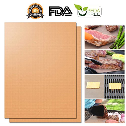 BBQ Grill Mat,Kyson Non-Stick Barbecue Grill Mat Baking Mats Heat Resistant Reusable Barbecue Sheets (Gold)