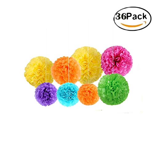 36 Pcs 14 Inch, 10 Inch, 8 Inch Assorted Rainbow Colors Tissue Paper Pom Poms Flower Balls For Birthday Wedding Party Baby Shower Decorations By Fadesun