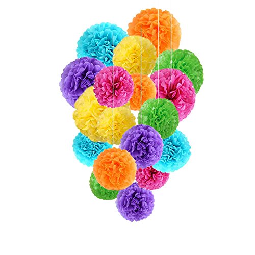- 6 Pieces of each color, each color with 3 different sizes(14inch, 10inch, 8inch) ; 36 Pieces tissue paper poms in one pack.