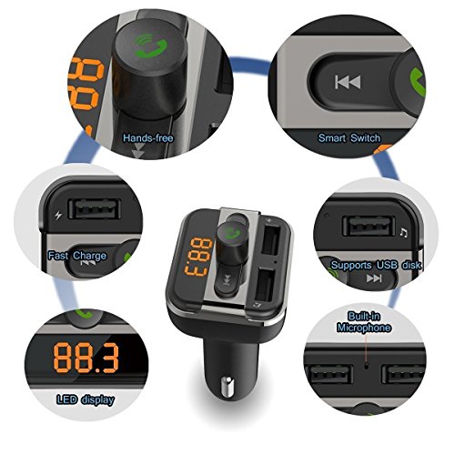 3.EASY TO USE--- Simply plug into cigarette lighter socket. Control directly as an FM transmitter, The power-off memory stores the last FM frequency for automatic connection when turned on. Automatically connect to the bluetooth in the second time, if your smart phone bluetooth are open!