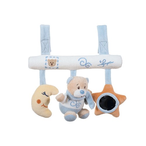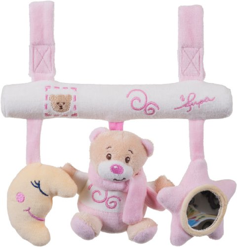 Dieser Universal Trapezhänger kann mit dem integrierten Klettverschluss fast überall angebracht werden (Babyschale, Kinderwagen, Laufgitter, Auto, usw).