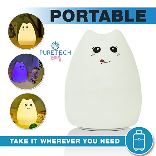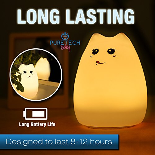 PORTABLE: Take this portable night light wherever you need. This stylish kitten night light does not rely on a power cord to use it. Just charge the 12mAH Lithium battery (for approx 3 hrs) and it will last you at least 12-18 hours depending on use. That is an entire night and more! It makes the perfect night decor for a childs bedroom bedside