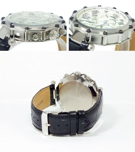 -. Feature : (約)H45×W45×D14mm (ラグ、リューズを除く)、重さ(約)90g、腕回り最大(約)19.5cm、最小(約)15.5cm、ベルト幅(約)最大22mm、(約)最小19mm / ステンレス(ケース)、レザー(ベルト) / クォーツ、クロノグラフ、日付カレンダー、3気圧防水、ホワイト(文字盤カラー)、ブラック(ベルトカラー) / 専用BOX、保証書、取扱説明書 / 2年間
