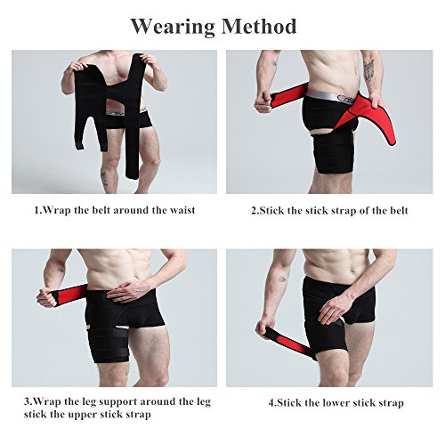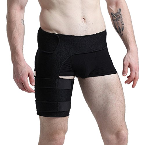 - UNIVERSAL SIZE: This adjustable Groin Support can be worn on either the right or left leg for men and women. Its capability to loosen up and back to original size and shape captures the users as it lays its durability. It fits all waists up to 46 inch and all thighs up to 28 inch and provides more room for tightening or loosening, to ensure maximum comfort.