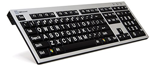 LogicKeyboard Large Print Computer USB Wired Keyboard Slim for Visually Impaired - White Letters on Black Keys For PC-LKBU-LPRNTWB-AJPU-US