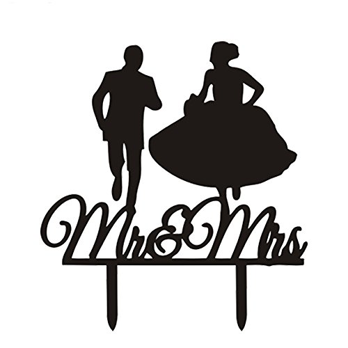 Ecape Acrylic Wedding Cake Topper Bride and Groom Celebration Cake Toppers with Art Words Mr and Mrs for Decoration - Running Couple