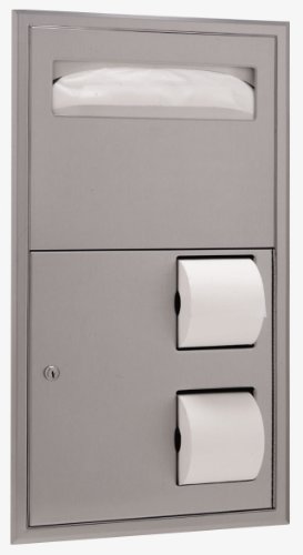Bobrick 3474 ClassicSeries 304 Stainless Steel Recessed Dual Roll Seat Cover and Toilet Tissue Dispenser, Satin Finish, 16" Width x 29-1/4" Height