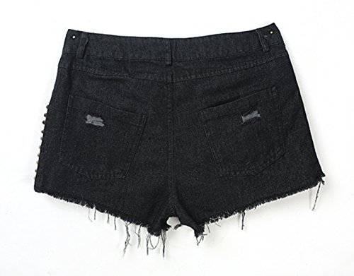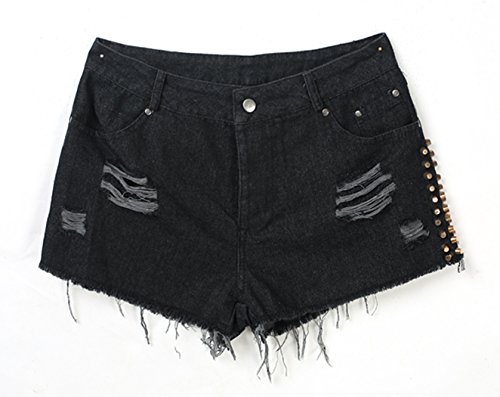 Studio : eshion Publisher : eshion Binding : Apparel Product Description 100% Brand New. Material: Denim Colors: Black Pattern: Solid Waist: High Waist Decor: Rivet Pocket: Side Pockets and Back Pockets Close Type: Button Color design: Natural Color Fit design: Slim Shorts Length: Mini Design: Ripped Occasion: Casual, Club The accessories are not included. Package Content: 1 x Women Shorts