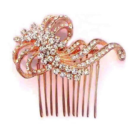 Product Description Elegant rose gold hair comb decorated with Crystal Rhinestones. Comb measures 2.75 x 2.25 inches, Separate Pieces for custom styling. Leslie Li -Love your Look! 0