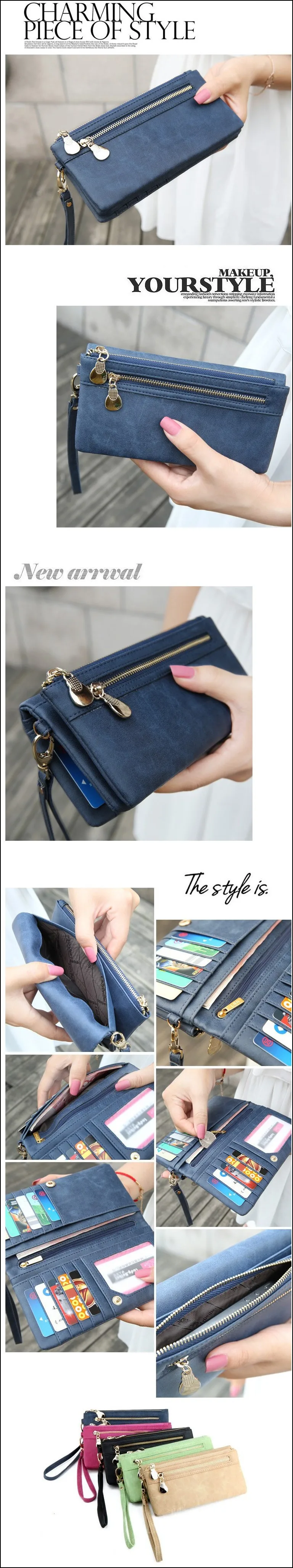 High Capacity Fashion Women Wallets Long Dull Polish PU Leather Wallet Female Double Zipper Clutch Coin Purse Ladies Wristlet