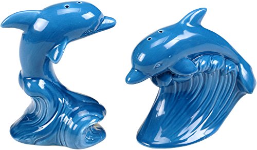 Sea Life Blue Dolphins Salt and Pepper Shaker Set Ceramic 4.5 Inches