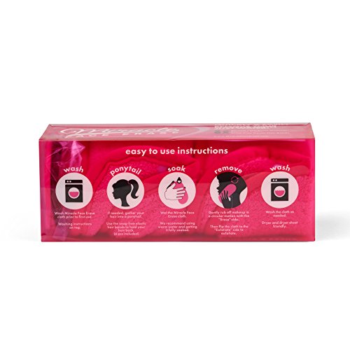 -. Feature : REMOVES 100% OF MAKEUP - including waterproof - as well as oils, daily pollutants / Includes: 2 Miracle Face Erase cloths and 6 hairbands. / REUSABLE: Machine Washable (up to 1,000 washes) with hanging tab for easy drying! / EXFOLIATING TEXTURE removes dead skin, cleans pores / CHEMICAL-FREE: Perfect for sensitive skin, ECO-FRIENDLY