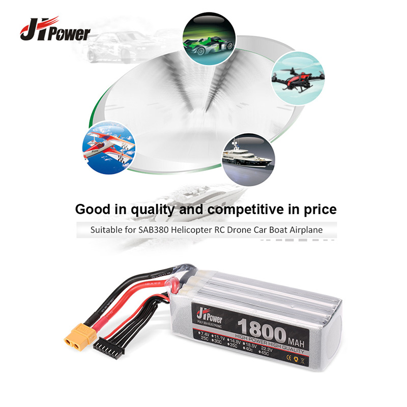 This high quality 22.2V 1800mAh 25C 6S LiPo battery is just designed for RC super fans. It's suitable for SAB380 helicopter RC car boat airplane, which is a very good and economical choice.